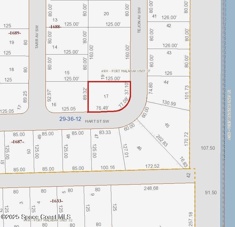 SUNNY, QUIET NEIGHBORHOOD CONVENIENTLY CLOSE TO ALL OF PALM BAY'S BEST! THIS WOODED .24 ACRE CORNER LOT ON A PAVED ROAD COULD BE JUST WHAT YOU'RE LOOKING FOR! IT'S 4 MINUTES TO MCGRIFF PARK, A FUN VENUE WITH A PLAYGROUND, PICNIC SPOTS, AND URBAN-STYLE SKATEBORD RAMPS. THE MALABAR ROAD CORRIDOR IS 3 MINUTES NORTH, LINED WITH SHOPPING, RESTAURANTS, AND OTHER EVERYDAY SERVICES. THE ST. JOHN'S HERITAGE PKWY TO I-95 AND THE EXPANSIVE FRED POPPE REGIONAL PARK ARE ALSO NEARBY. JUPITER ELEMENTARY IS A 4-MINUTE DRIVE. SOUTHWEST MIDDLE SCHOOL IS 6 MINUTES, AND HERITAGE HIGH IS 10 MINUTES. THIS SITE UTILIZES WELL WATER AND SEPTIC.