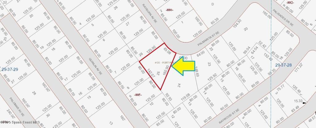 0.32 acre buildable residential lot available in Port Malabar Unit #22 of Palm Bay. Nicely located in the SE Section near Bayside Lakes, this lot is just 3.7 miles - 8 minutes to the Publix Supermarket, 4.6 miles - 8 minutes Westside Elementary Schools, 12.4 miles - 24 minutes to Melbourne Airport, and 14.5 miles - 30 minutes to the beaches of Indialantic. From Exit #173 of I-95 go west on Malabar Road. Turn left on San Filippo Drive and proceed south for 4.9 miles. Turn right on Palisades Drive, and left on Palmarita Street which turns right and becomes Rayburn Avenue . The lot will be on your left.