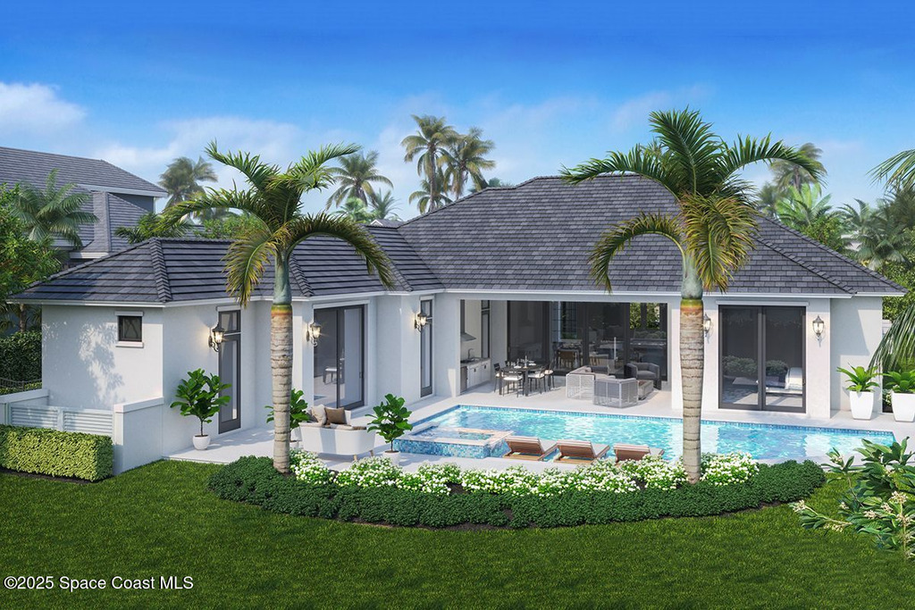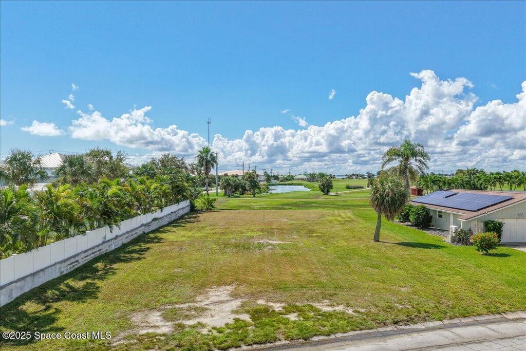Discover the perfect setting for your dream home on this rare, cleared and buildable .36-acre lot located directly on the Cocoa Beach Country Club Golf Course with no neighbors behind you! Enjoy open views of the fairway, lakes, and a distant river view if you build two stories. The property features a fence and retaining wall along the north side, adding value and convenience for your future build. No HOA. Excellent location close to downtown Cocoa Beach, schools, shops, and restaurants. Plans available for a custom 4 bed, 4.5 bath home with 3-car garage and pool and cabana suite connected by a breezeway. Design includes a spacious lanai overlooking the pool and golf course, perfect for entertaining or relaxing after a day on the greens. Whether you choose a single-level residence or two stories to capture the river, this rare property offers the ideal canvas for your dream home in one of Florida's most desirable coastal communities.