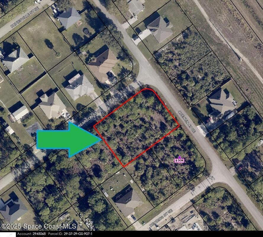 Two lots together on the corner available in Port Malabar Unit #22 of Palm Bay. Nicely located in the southeast section near the Bayside Lakes Subdivision, this 0.49 acre buildable residential corner lot [which can be subdivided] is just 2.4 miles - 6 minutes to the Publix Supermarket, 4.1 miles - 8 minutes to Westside Elementary School, 13.2 miles - 29 minutes to Melbourne Airport, and 15.3 miles - 34 minutes to the beaches of Indialantic. From Exit #173 of I-95 go west on Malabar Road. Turn left on San Filippo Drive SE and proceed south for 5.4 miles. turn right on Quentin Avenue SE and left on Reardon Street SE. Go to the corner lot